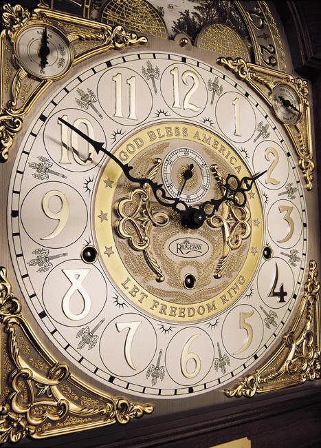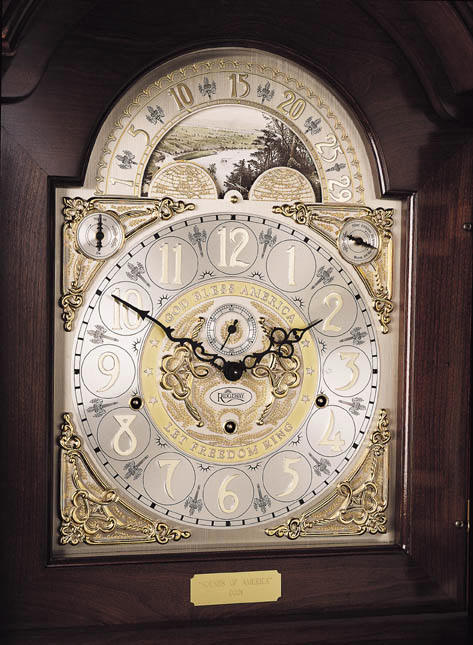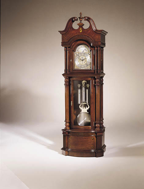 Beveled side glass shows the unique pendulum and