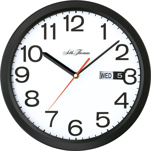 Black case with white Arabic dial and day/date window.